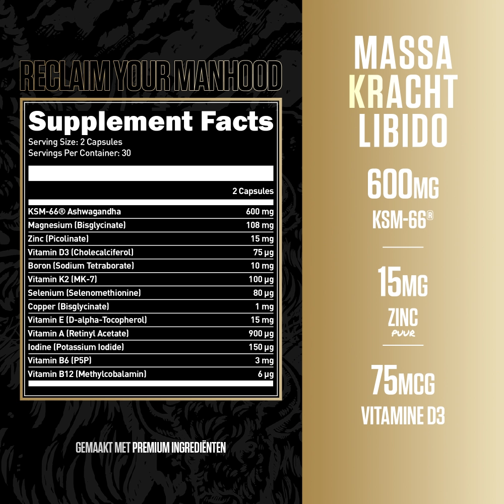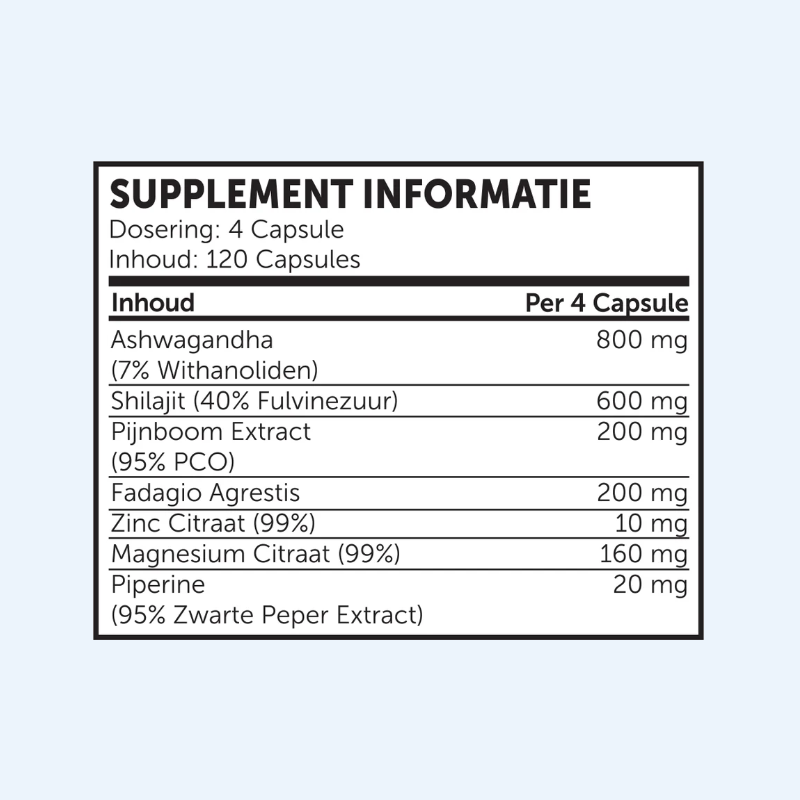 Het idee is duidelijk: een product dat niet alleen inspeelt op testosteron support, maar ook breder gericht is op energie, stressmanagement en vitaliteit. Het nadeel is dat de doseringen van de afzonderlijke ingrediënten vrij laag liggen, waardoor het moeilijk is om echt verschil te merken.